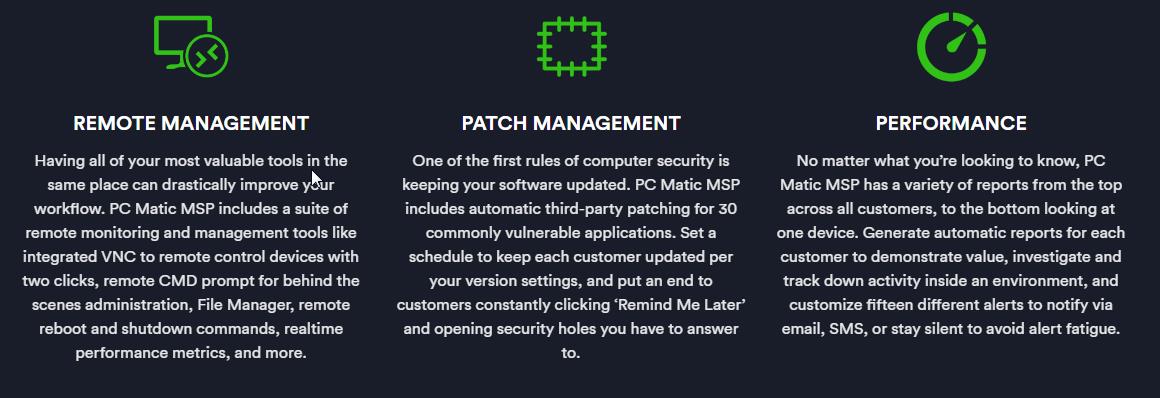 PC Matic MSP Endpoint Suite focuses on proactive detection and believes the best way to do so is through the use of application whitelisting. However, traditional whitelisting is difficult to deploy and even harder for IT staff to manage. PC Matic MSP Endpoint Suite offers an alternative approach, with a globally automated whitelist managed by a team of professional malware researchers that automatically analyze unknown applications and categorize them globally.